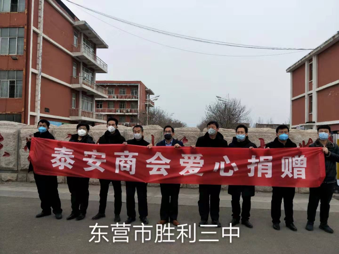 作為東營市泰安商會副會長單位的“山東揚石工程檢驗檢測有限公司”/副會長歐陽石,協同東營市金盾司法學校/會長楊萬里、東營市玉峰幼兒園/商會黨委書記張峰、東營海之聲文化傳媒有限公司/常務副會長陳乃強、東岳德系名車維修中心/副會長張峰、東營奧樽商貿有限公司/副會長張培峰、山東銀豐工貿有限公司/副會長郭延海、及明寶建、趙玉增、史元良、劉洋、顏凱華、陳明兵、和華、王林、史廣國一行,攜帶防疫緊缺物資“酒精、84消毒液、口罩、噴壺”在東營市教育局統一組織下,前往東營市第一中學、東營市第二中學、東營市勝利第三中學走訪捐贈。